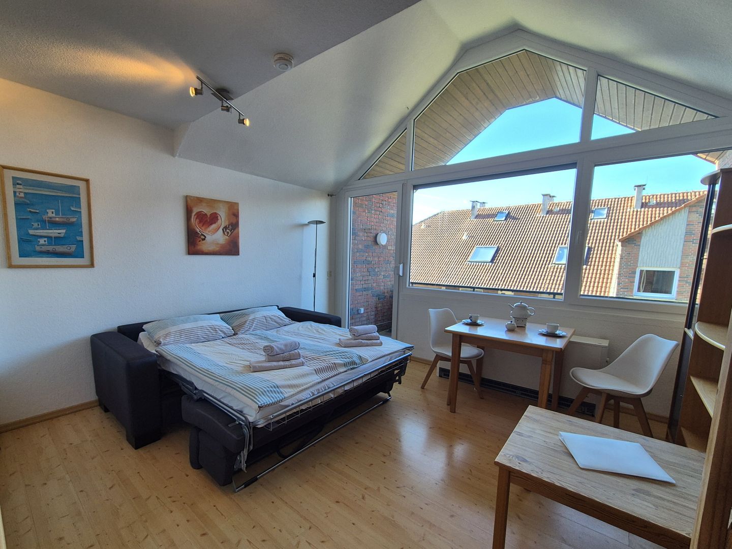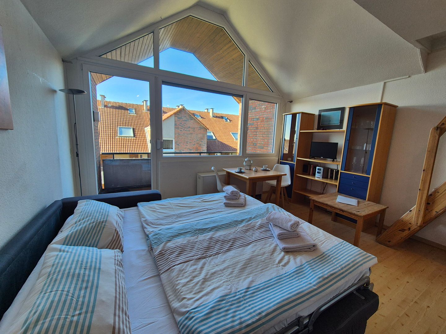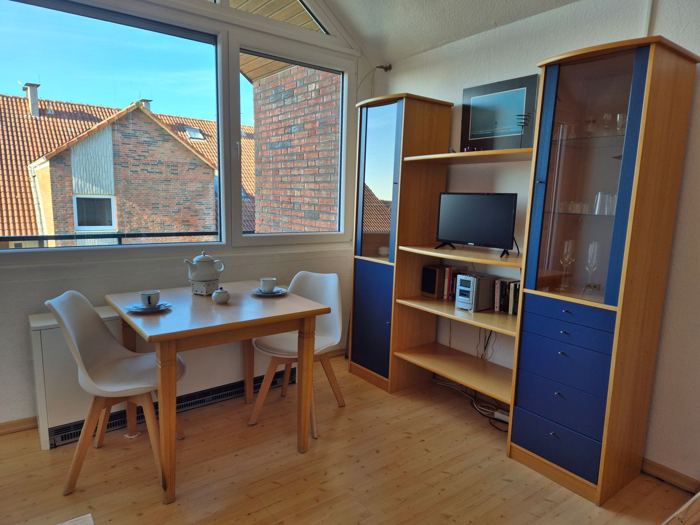 Ein Balkon mit Gartenmöbeln erweitert den Wohnraum nach draußen und lädt dazu ein, den Tag in Ruhe zu beginnen oder ausklingen zu lassen. Für Ihre Anreise steht 1 kostenloser Parkplatz zur Verfügung. Die Wohnanlage verfügt zudem über eine Gemeinschaftswaschmaschine und einen Fahrradraum. Die Unterkunft wird über eine Zentralheizung beheizt; Rauchmelder sind vorhanden.