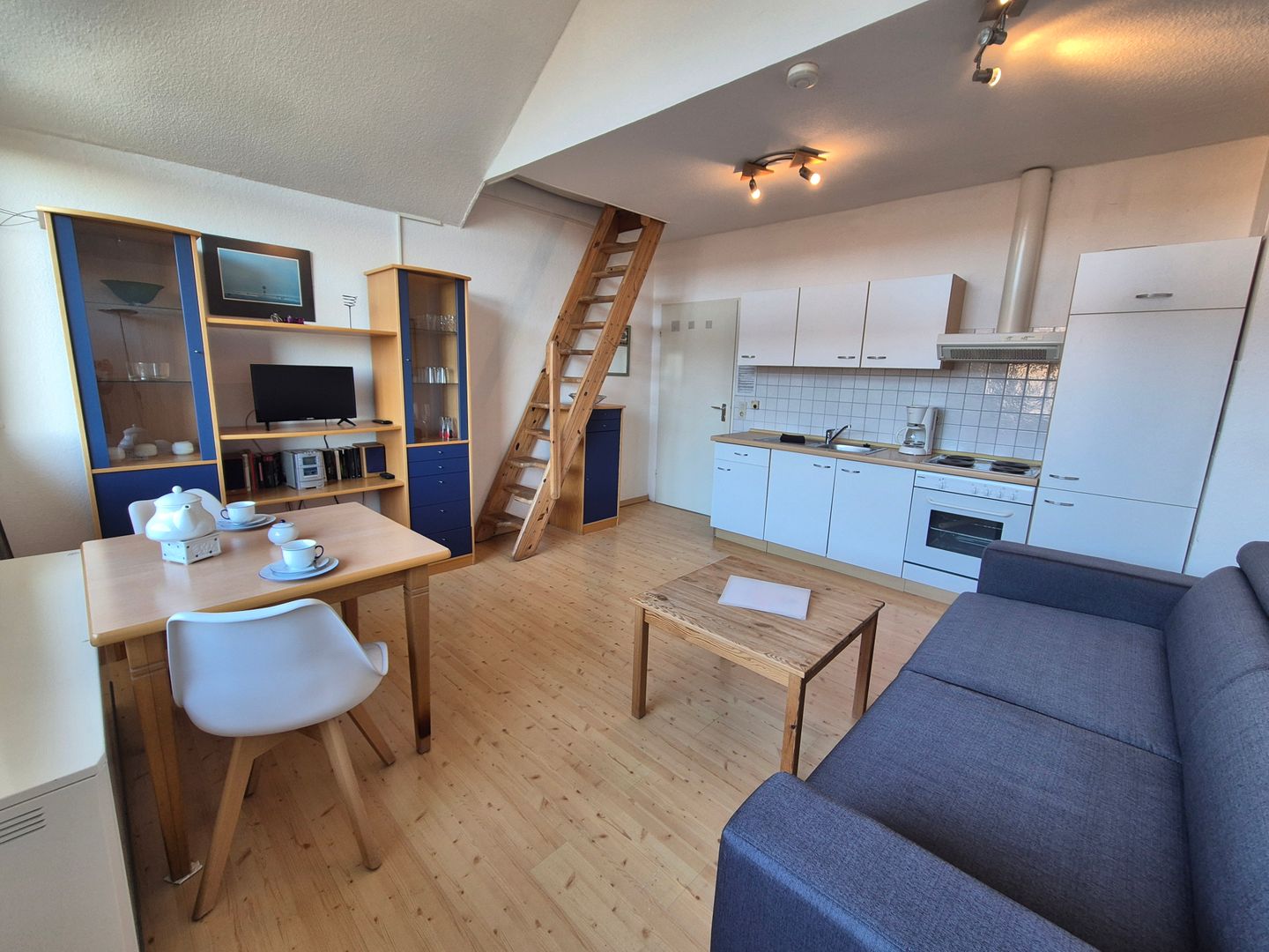Das Einraumappartement Deichkrone B41 in der Deichstraße 14 bietet auf 30 m² im 2. Stock einen kompakten, durchdacht ausgestatteten Rückzugsort für bis zu 2 Personen. Als Nichtraucher-Unterkunft ist sie ideal für Gäste, die Wert auf eine gepflegte Atmosphäre legen; Dieses Appartement verfügt über kein separates Schlafzimmer: der Wohnbereich ist offen gestaltet und verbindet Wohnzimmer, Essbereich, Schlafen und Küche zu einem angenehmen Raum für entspannte Urlaubstage. Ein Sofa, TV sowie ein Esstisch ergänzen die wohnliche Einrichtung, eine Garderobe sorgt für Ordnung.