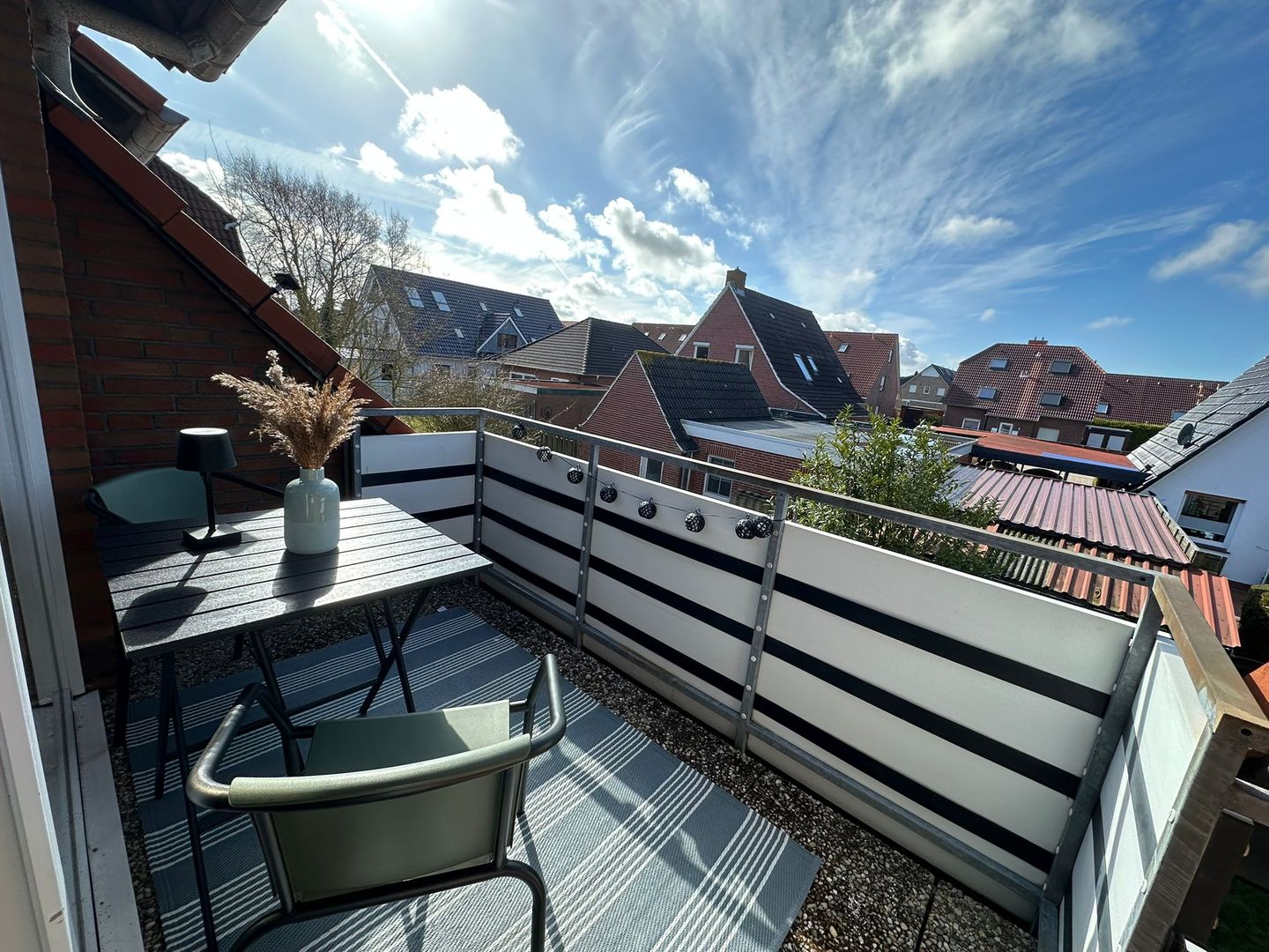 Ein echtes Highlight ist der Balkon: Genieße hier deine Auszeit an der frischen Nordseeluft – vielleicht mit einem Kaffee am Morgen oder einem Glas Wein am Abend.